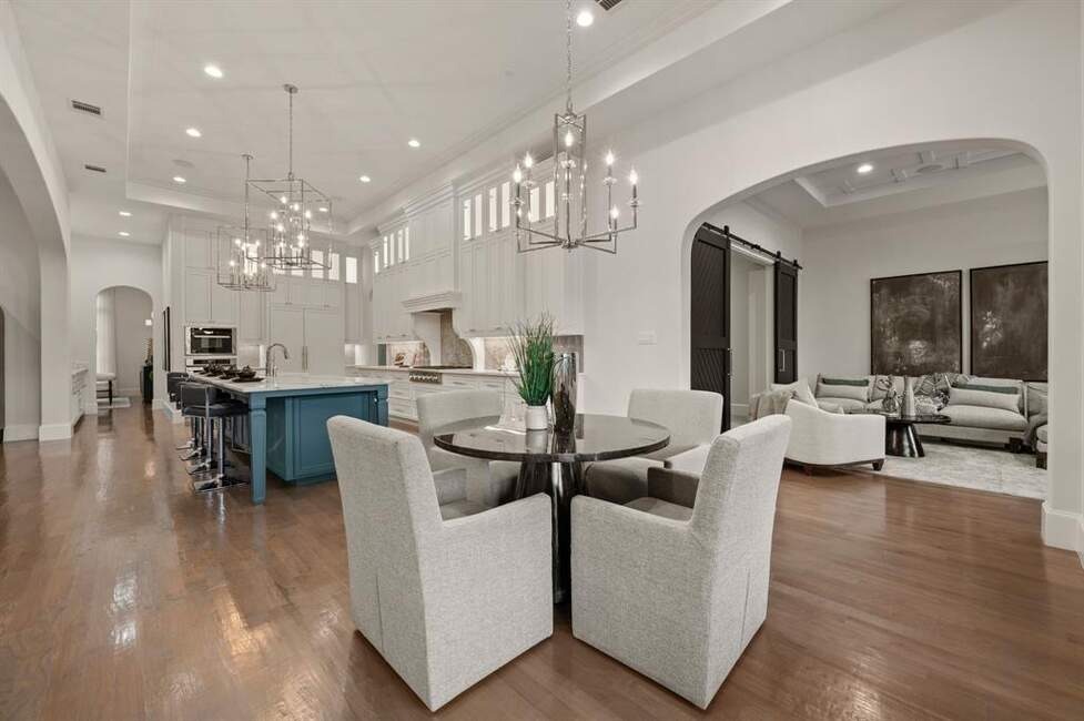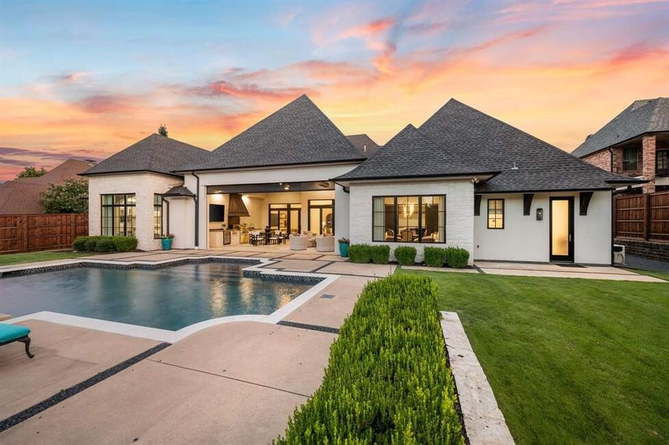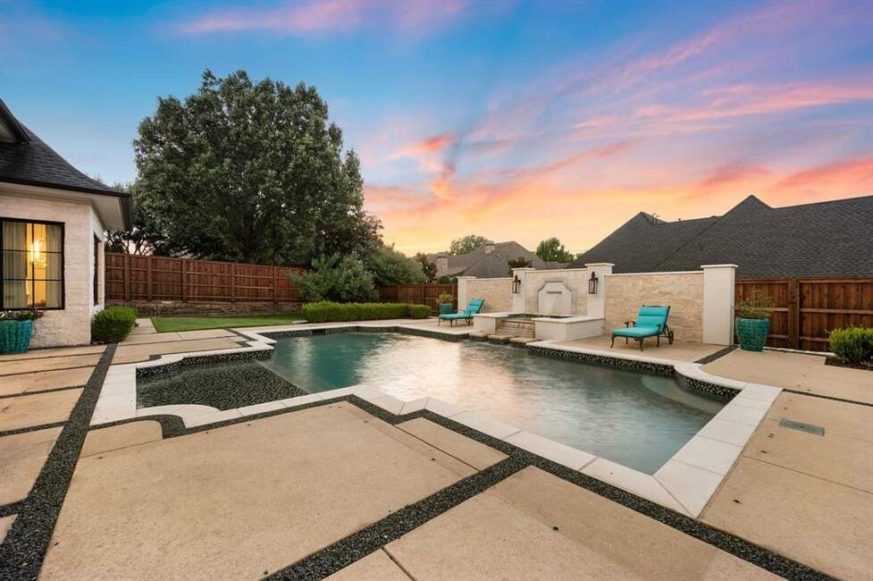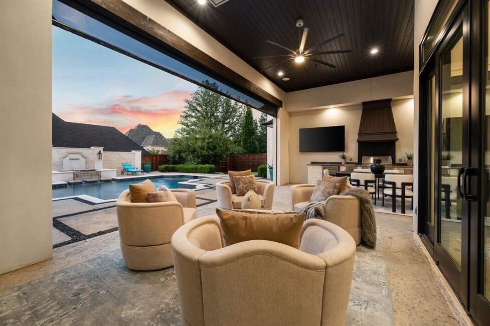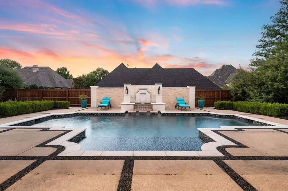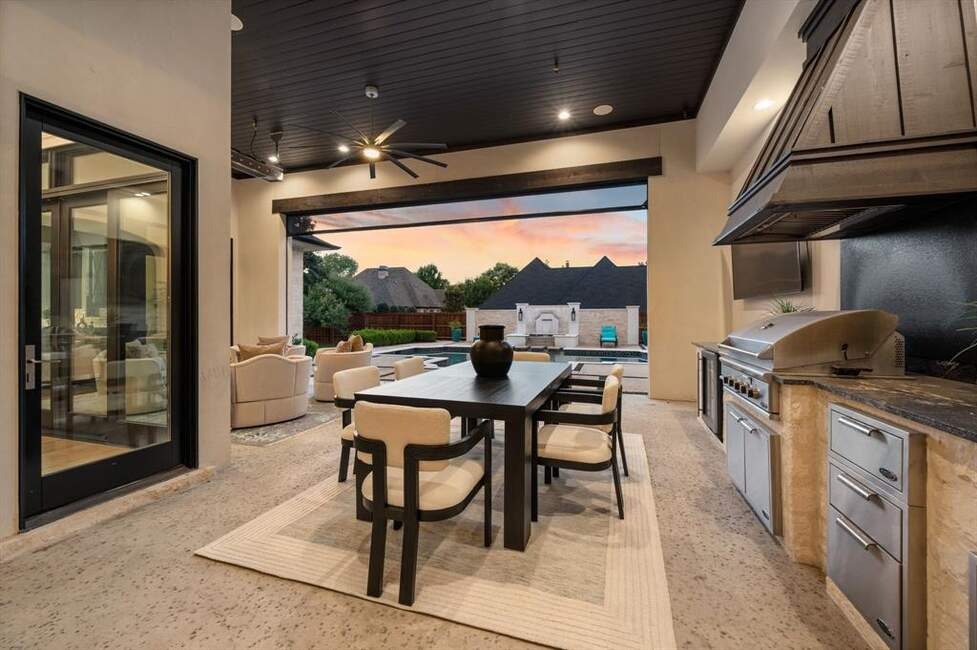 Must See! Stunning custom built home nestled on a quiet cul-de-sac in the heart of Colleyville! With 4 bedrooms, 4.5 baths, a private study, a media room, game room, and a rare 4-car garage, this masterpiece combines luxury living with functional design. From the unique French smear stone exterior to the dramatic 9-ft M2 Metals front door and gated driveway, every detail has been carefully crafted. Inside, a smart 3-way split bedroom layout ensures privacy, while the climate-controlled wine room, solid oak wood floors, custom designed ceilings, and nickel and brass designer lighting deliver timeless elegance throughout. The gourmet kitchen is a chef’s dream, featuring top tier Thermador appliances, custom in-set soft-close cabinetry, a stunning 14-ft Vermont Dandy marble island, and Lutron bridge light switches. Enjoy modern comfort with open-cell foam insulation for energy efficiency, Pella windows and doors with cast stone frames, and retractable window shades. Smart home features allow full control of the security system, garage doors, pool, spa, and sprinkler system right from your phone. With four wireless access points, built-in audio throughout, solid-core doors, and interior wall insulation for sound reduction, this home is as functional as it is stunning. Step outside to your private resort-style oasis showcasing a tranquil Watercrest-built pool and spa with Pentair smart control system, a covered patio with retractable recessed screens, ceiling heaters, fans, and a DCS-equipped outdoor kitchen with grill, stovetop, sink & beverage cooler.