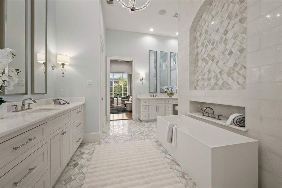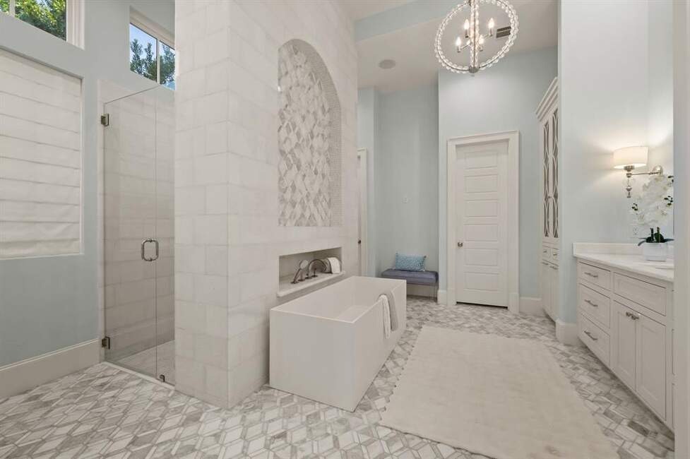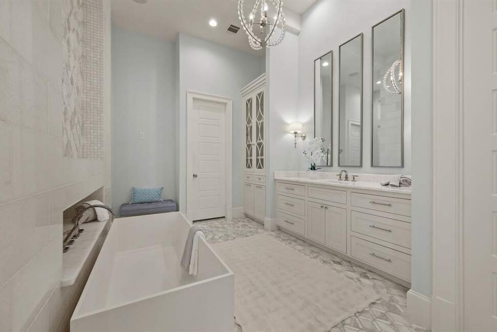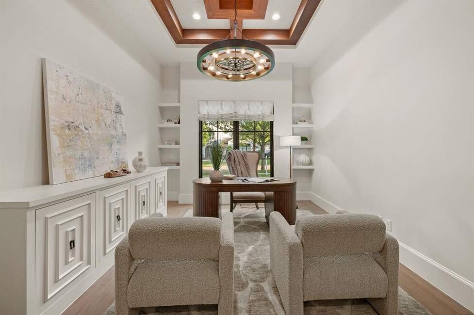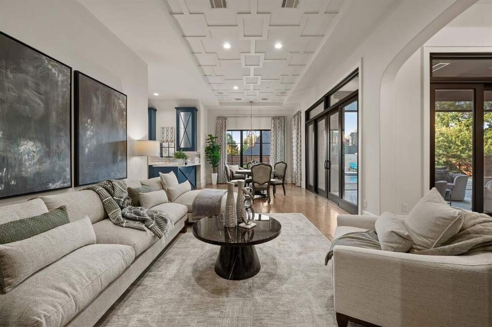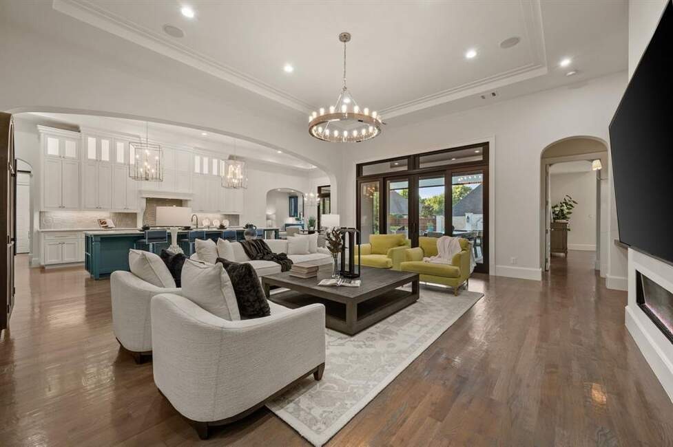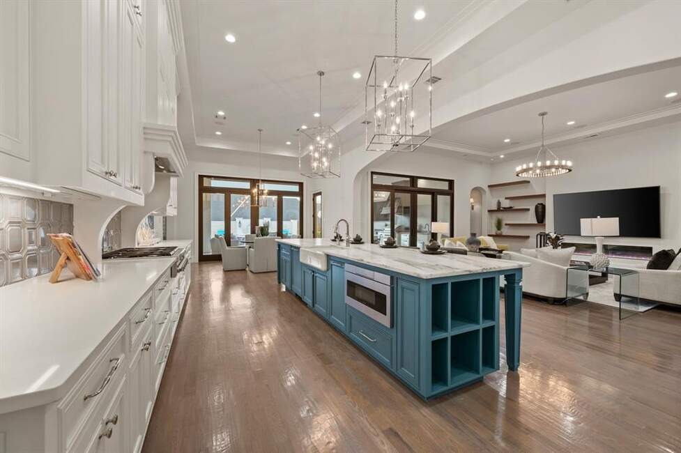 Must See! Stunning custom built home nestled on a quiet cul-de-sac in the heart of Colleyville! With 4 bedrooms, 4.5 baths, a private study, a media room, game room, and a rare 4-car garage, this masterpiece combines luxury living with functional design. From the unique French smear stone exterior to the dramatic 9-ft M2 Metals front door and gated driveway, every detail has been carefully crafted. Inside, a smart 3-way split bedroom layout ensures privacy, while the climate-controlled wine room, solid oak wood floors, custom designed ceilings, and nickel and brass designer lighting deliver timeless elegance throughout. The gourmet kitchen is a chef’s dream, featuring top tier Thermador appliances, custom in-set soft-close cabinetry, a stunning 14-ft Vermont Dandy marble island, and Lutron bridge light switches. Enjoy modern comfort with open-cell foam insulation for energy efficiency, Pella windows and doors with cast stone frames, and retractable window shades. Smart home features allow full control of the security system, garage doors, pool, spa, and sprinkler system right from your phone. With four wireless access points, built-in audio throughout, solid-core doors, and interior wall insulation for sound reduction, this home is as functional as it is stunning. Step outside to your private resort-style oasis showcasing a tranquil Watercrest-built pool and spa with Pentair smart control system, a covered patio with retractable recessed screens, ceiling heaters, fans, and a DCS-equipped outdoor kitchen with grill, stovetop, sink & beverage cooler.