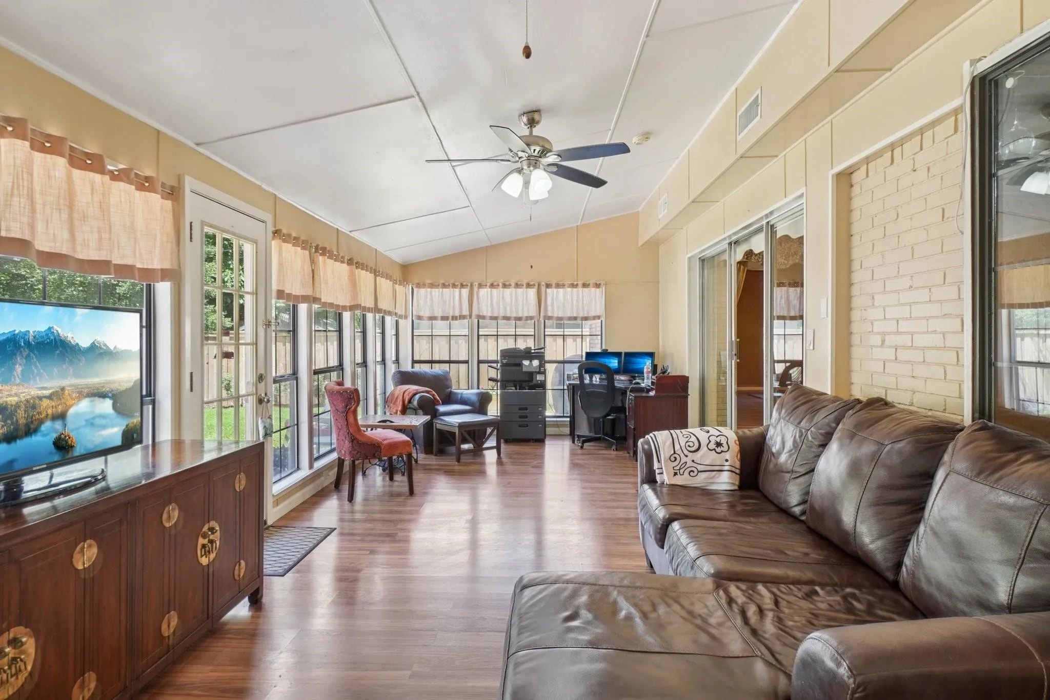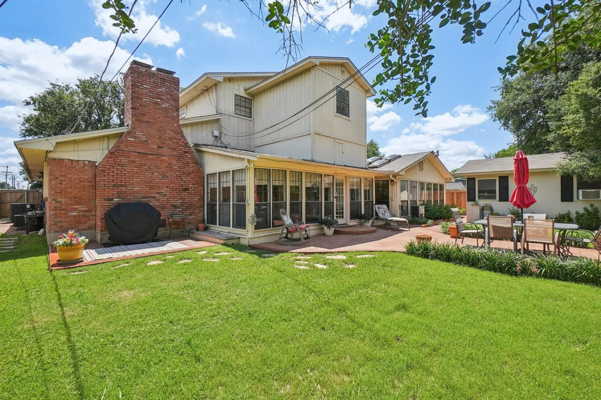 4212 SW Loop 820, Fort Worth A South-Facing Legacy Estate in Foster Park-Tanglewood Nestled on a peaceful service road in the desirable Foster Park-Tanglewood neighborhood, this expansive south-facing estate spans over 4, 000 sq ft, making it the largest property in the subdivision. Built by the original developer as a showcase, the home blends legacy character with modern practicality and abundant storage throughout. The downstairs master suite serves as a serene retreat, featuring a spacious walk-in closet, a private bathroom, and a cozy fireplace. Adjacent is a tranquil AC-cooled garden room surrounded by mature trees, creating an inviting indoor-outdoor space. This sunroom features a stunning fountain, while two additional fountains grace the outdoor areas, enhancing the estate’s ambiance. The main living area, or great room, showcases a huge, one-of-a-kind fireplace that commands attention and warmth, making it perfect for gatherings. The impressive gourmet kitchen boasts ample counter space and a fully functional utility room. Thoughtfully designed storage options abound, including built-in cabinets and closets for easy organization. A second bedroom on the main floor offers ideal options for family, guests, or a home office. Upstairs, an apartment-style suite features three bedrooms, a full bathroom, a separate living area, and a second kitchenperfect for multi-generational living or hosting guests. Step outside to discover a large backyard patio, ideal for entertaining, which includes a designated grilling area. The property also features side parking for RVs or boats and a three-year-old privacy fence. Located just 3 miles from TCU, this estate is less than a 10-minute drive to the campus, blending luxury, comfort, and convenience with the soothing sounds of three beautiful fountains throughout.