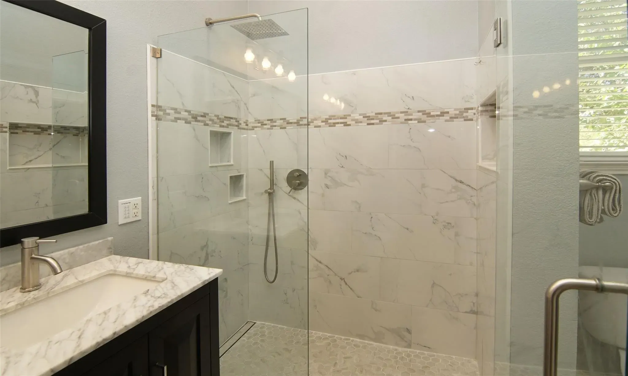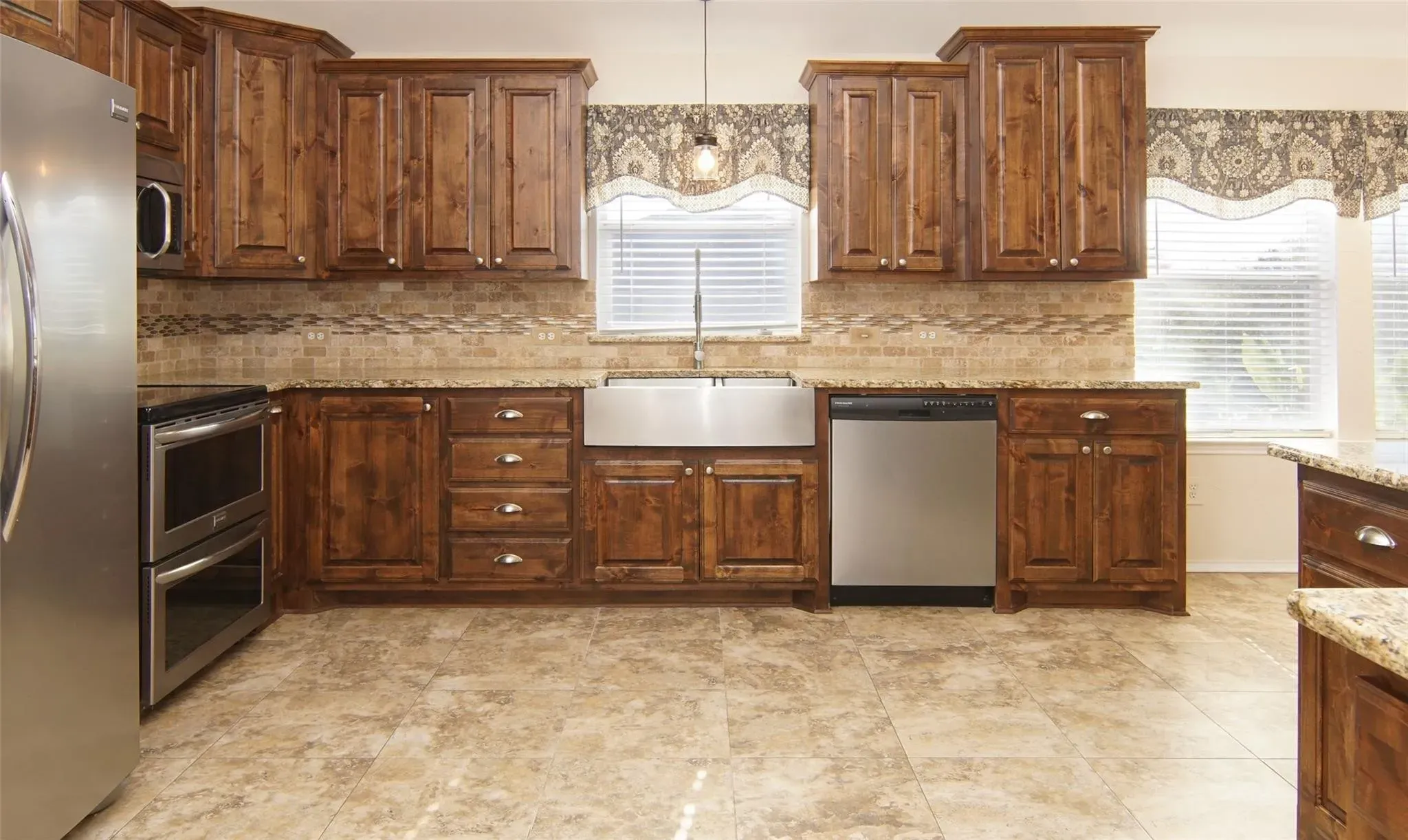 Elegant French manor located on a two acre corner lot in the prestigious gated Tour 18 community. The home is an oasis of lush landscaping with majestic post oak trees overlooking the 10th hole, which replicates the famous Church Pew bunkers from the legendary 3rd hole at Oakmont. Enter through an extraordinary guarded port cochere with an oversized three car garage. Impressive amenities including slate, stone, and handscraped hardwoods, through three spacious living areas, five bedrooms, library, gameroom, exercise room, media movie room, wet bar, mud room. Multiple staircases, including a grand staircase, ceiling fans, monitored security, plantation shutters, thermos windows, and new architectural shingle roof. Gourmet kitchen with 150-year-old beams, granite countertops, breakfast bar, kitchen island with sink, Subzeros, two dishwashers, six burner cooktop plus gridle, double ovens, and maple distressed cabinetry. Media room seats eight. The upstairs game room includes refrigerator and microwave. Breathtaking 30-mile views from the slate balcony overlooking the towering trees, the golf course, and hill country sunsets. The backyard paradise is complete with a 50-foot veranda with built in cooktop and heated inground lagoon pool with attached spa and cleaning system. Perfect for casual everyday living and for large scale entertaining.